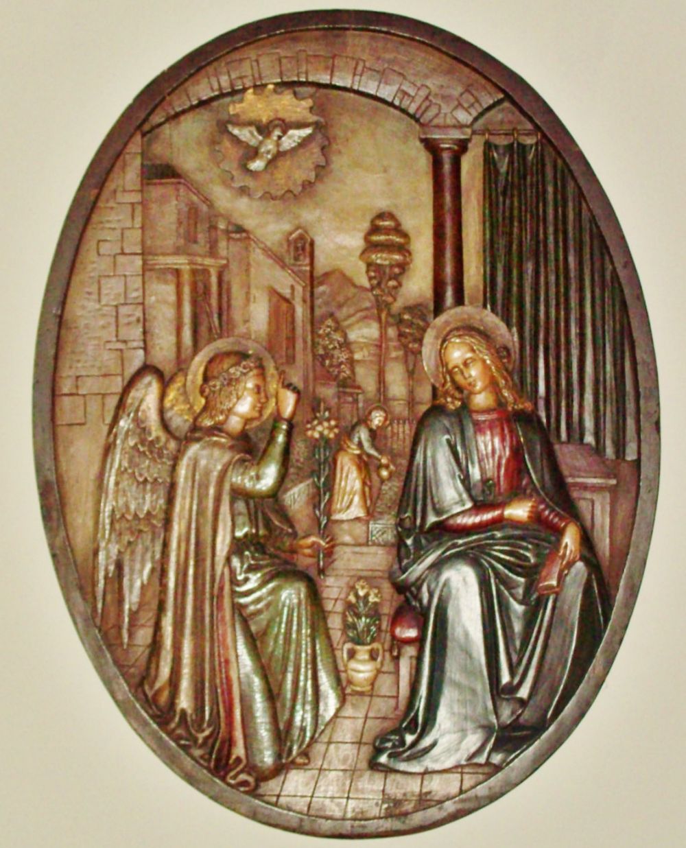 The story of the Annunciation, of course, couldn’t be more familiar – and doubtless many of us have images of it in our heads, retained from Christmas cards, perhaps, or artwork in our churches, and one thing all these pictures tend to have in common is that they include details not found in scripture. Sometimes these are obviously put there because they stand for, symbolize something beyond themselves, like the white lily included by many artists, representing Our Lady’s purity, but just as often they are little every day touches whose purposed seems simply to remind us that it was a real woman with a real life to whom all this happened: a kitten chasing a ball of wool with which Mary has been knitting; a basket of freshly laundered clothes at Our Lady’s feet. I came across one such picture recently that I particularly liked because it was somehow a rather chaotic laundry basket: I find it reassuring to think that, though she was immaculately conceived, that doesn’t necessarily mean that Mary always had an immaculate house!
