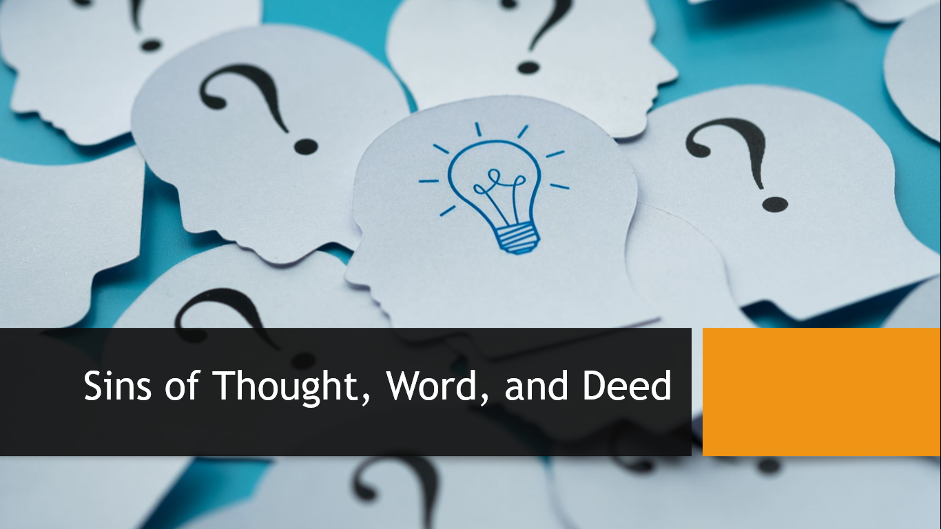 Sins are divided into these three, viz., sins of thought, word, and deed, … The first beginning of sin is its foundation, as it were, in the sin of thought; the second degree is the sin of word, insofar as one is ready to break out into a declaration of his thought; while the third degree consists in the consummation of the deed [action]. Consequently these three differ in respect of the various degrees of sin. Nevertheless it is evident that these three belong to the one complete species of sin, since they proceed from the same motive. For the angry man, through desire of vengeance, is at first disturbed in thought, then he breaks out into words of abuse, and lastly he goes on to wrongful deeds; and the same applies to lust and to any other sin.” (ST I-II, q. 72, a. 7, resp.) including gluttony.